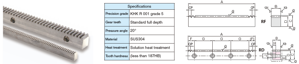 Module N/A 3.1831 | No. of Teeth N/A 100 | Shape N/A RD | Total Length Rack (A) N/A 39.370 in1000 mm | Face Width (B) N/A 1.181 in30 mm | Height (C) N/A 1.378 in35 mm | Height To Pitch Line (D) N/A 1.253 in31.82 mm |