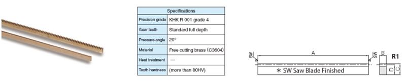 Small pitch racks made of free-cutting brass, excellent workability and high rust resistance.