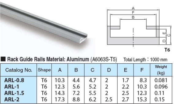 Construction N/A Guide Rails | A N/A 0.681 in17.3 mm | B N/A 0.346 in8.8 mm | C N/A 0.244 in6.2 mm | D N/A 0.098 in2.5 mm |