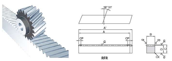 | ZST5-1000R | $0.00 | CAD N/A | Module N/A 5 | Effective No. of Teeth N/A 60 | Total Length (A) N/A 40.054 in1017.38 mm | Face Width (B) N/A 1.929 in49 mm | Height (C) N/A 1.535 in39 mm | Height To Pitch Line (D) N/A 1.339 in34 mm |