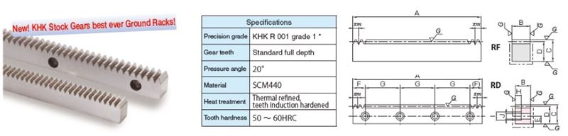 Module N/A 2 | Effective No. of Teeth N/A 80 | Shape N/A RF | Total Length Rack (A) N/A 19.789 in502.65 mm | Face Width (B) N/A 0.787 in20 mm | Height (C) N/A 0.984 in25 mm | Height To Pitch Line (D) N/A 0.906 in23 mm |
