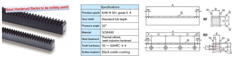 This is a strong rack made of Chromoly steel, treated by carburizing. Has high-strength, high wear resistance, and enables downsizing of SR racks. J Series products are also available.
