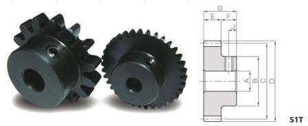 | SSDR1-30 | $11.39 | CAD N/A | Bore Type N/A Finished | Module N/A 1 | No. of teeth N/A | Bore (A) N/A 0.236 in6 mm | Hub Diameter (B) N/A 0.787 in20 mm |
