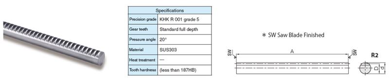 Module N/A 2 | Effective Number of Teeth N/A 79 | Total Length Rack (A) N/A 19.882 in505 mm | Outer Diameter (d) N/A 0.787 in20 mm | Height to Pitch Line (D) N/A 0.709 in18 mm |