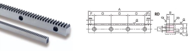 | KRGFD3-500J | $570.40 | CAD N/A | Module N/A 3 | Effective No. of Teeth N/A 53 | Shape N/A RD | Total Length Rack (A) N/A 19.666 in499.51 mm | Face Width (B) N/A 1.181 in30 mm | Height (C) N/A 1.378 in35 mm | Height To Pitch Line (D) N/A 1.260 in32 mm |