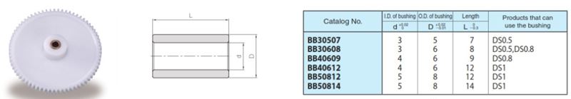 A Series of standard metal bushings that can be pressed into standard injection molded gears.