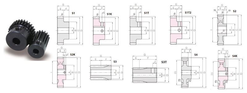 Bore Type N/A Plain | Module N/A 0.5 | No. of Teeth N/A 50 | Shape N/A S1T | Bore Diameter (A) N/A 0.236 in6 mm | Pitch Diameter (C) N/A 0.984 in25 mm | Outer Diameter (D) N/A 1.024 in26 mm | Total Length (G) N/A 0.472 in12 mm |