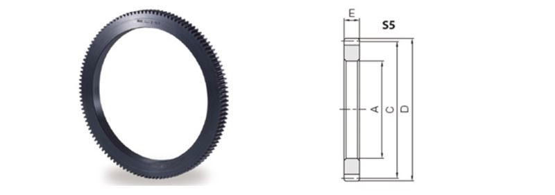 Module N/A 3 | No. of Teeth N/A 120 | Shape N/A S5 | Bore Diameter (A) N/A 11.654 in296 mm | Pitch Diameter (C) N/A 14.173 in360 mm | Outer Diameter (D) N/A 14.409 in366 mm | Face Width (E) N/A 1.181 in30 mm |
